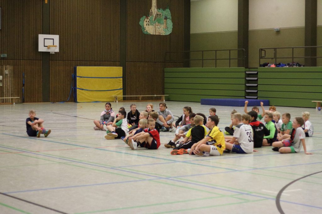 Gruppe 2 spielte mit Felix und Dennis kleine Spiele und baute am Ende einen kleinen Parkour auf. Die Ältesten übten sich heute Nachmittag, angeleitet von Damen-Torhüterin Steffi Szymanski und unterstützt von Lukas, vorrangig in Sachen Ausdauer und Positionswürfen. Alle Camp-Kids zogen trotz der anstrengenden sportlichen letzten Tage bis zum Ende durch. Morgen geht es ins Abschlussturnier.