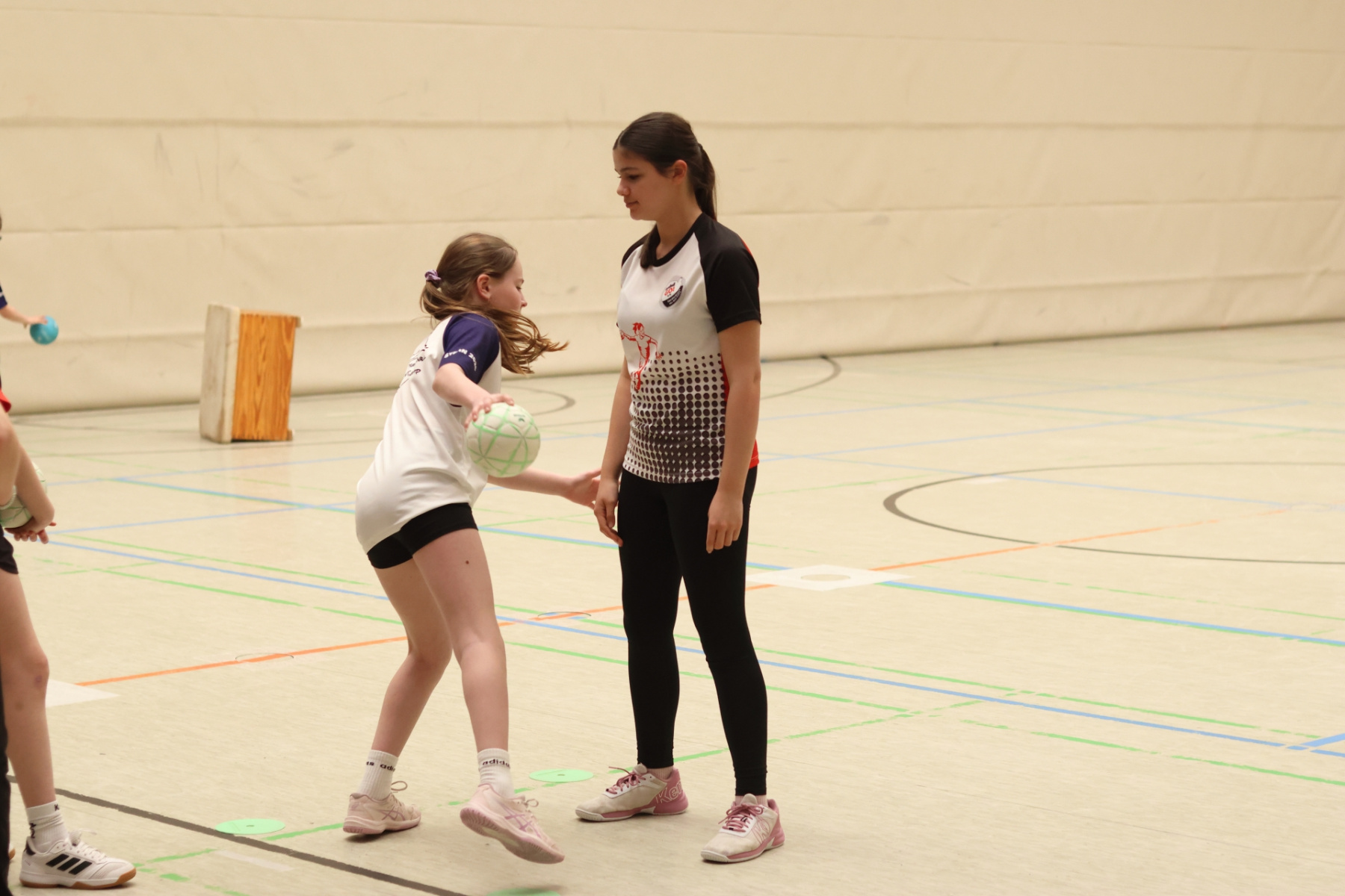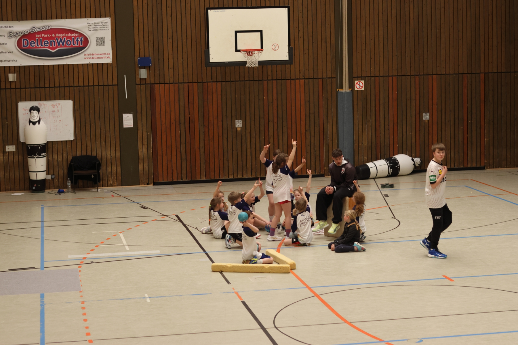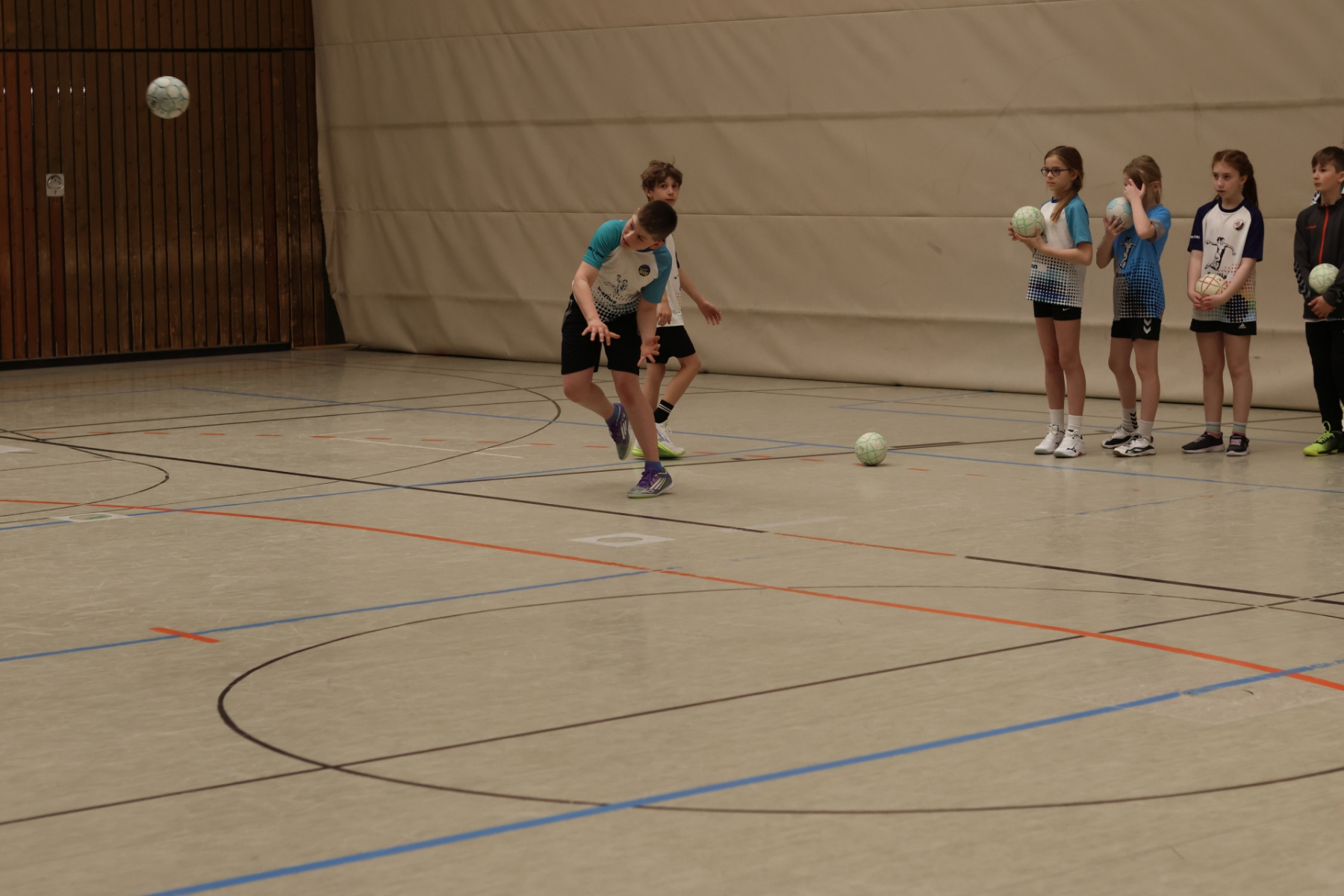 Für etwas Abwechslung und kleine Verschnaufpausen sorgte Friedrich (mB-Jugend) im Gymnastikraum. Mit Spielen zum Austoben und kurzen Yoga-Einheiten zum Runterkommen war für die perfekte Balance gesorgt – Körper und Geist sagen Danke. Die Jüngsten waren derweil bei Max (mB-Jugend) in der Burg-Schul-Sporthalle unterwegs und trainierten fleißig ihre Hand-Auge-Koordination. Gar nicht so einfach, wenn plötzlich alle Arme und Beine gleichzeitig mitmachen sollen!