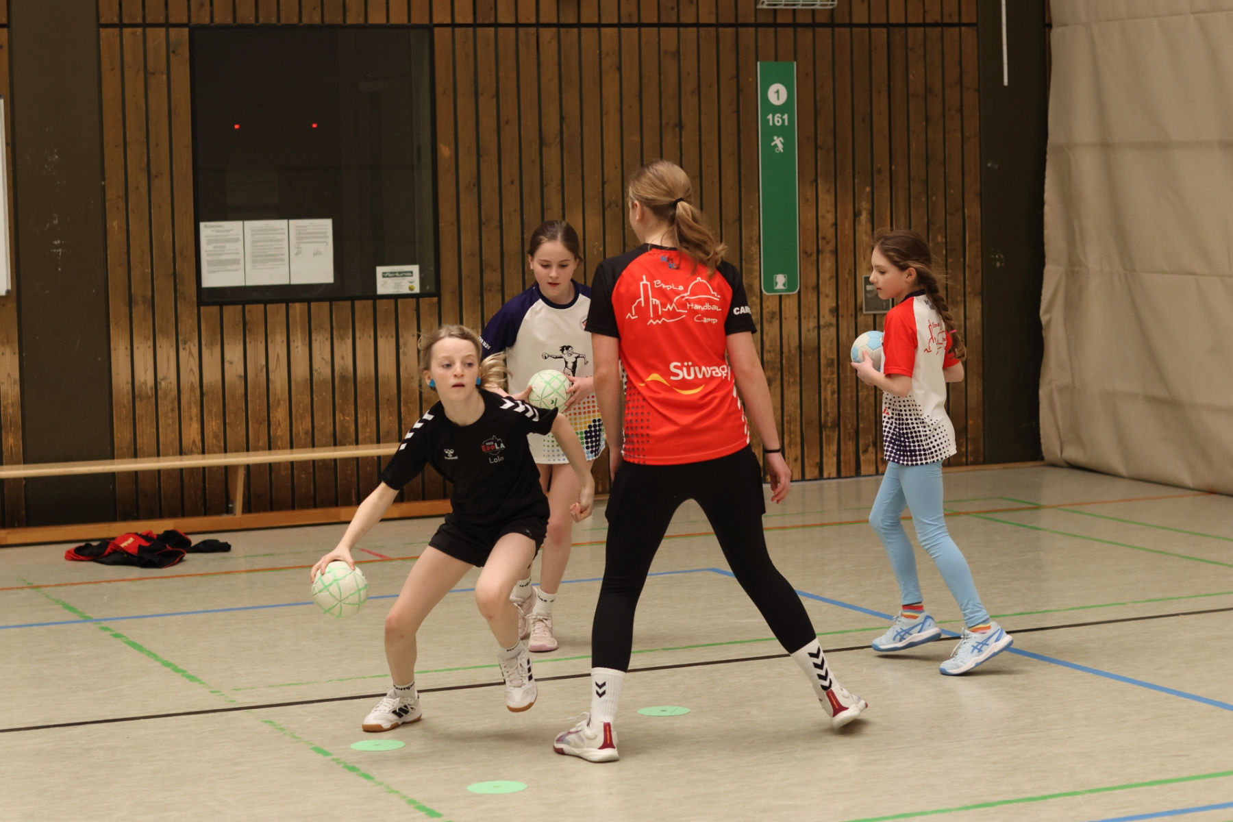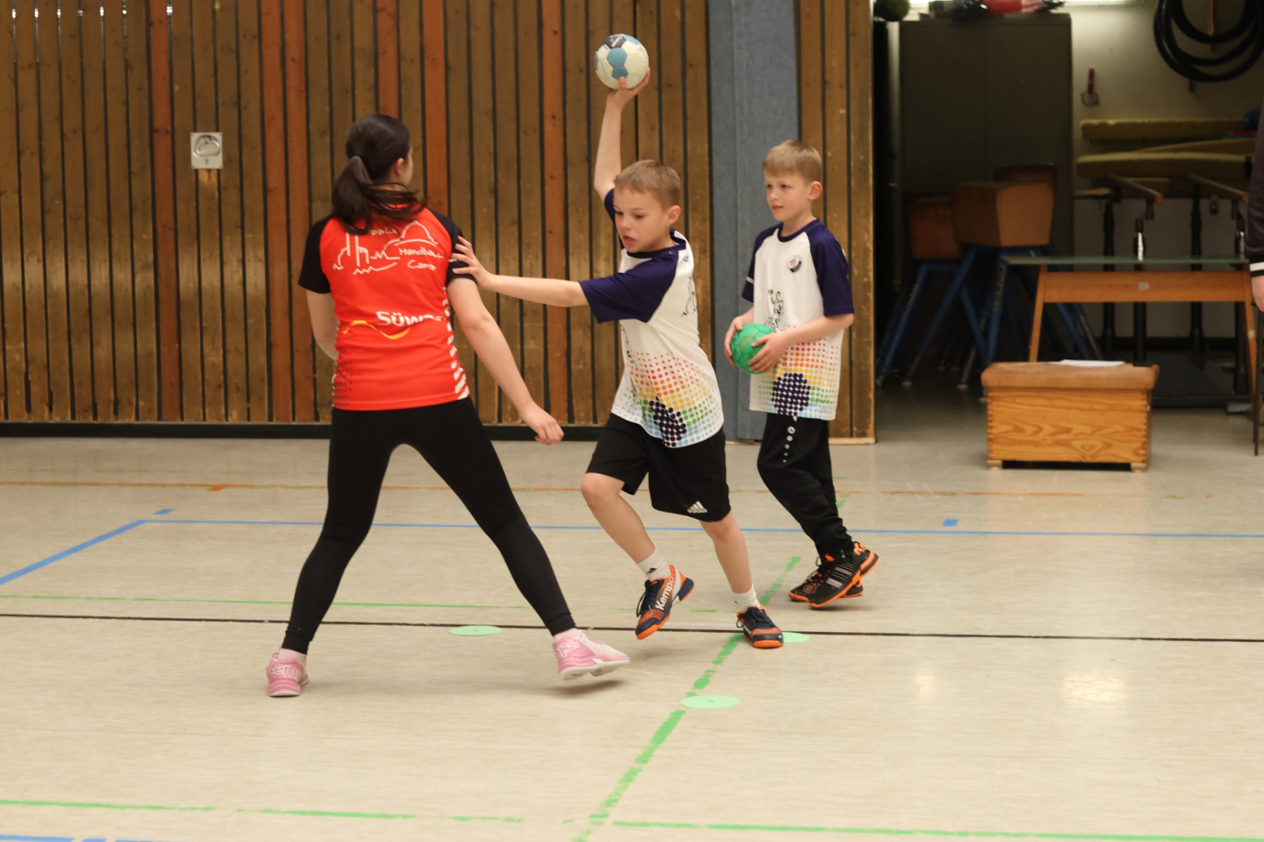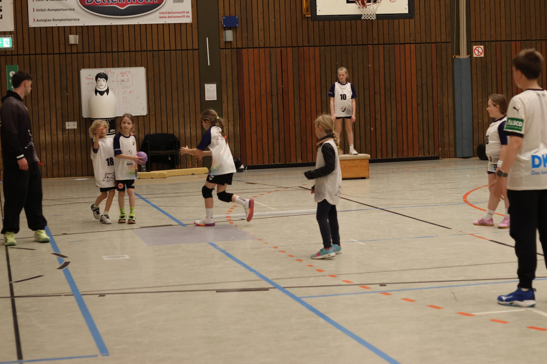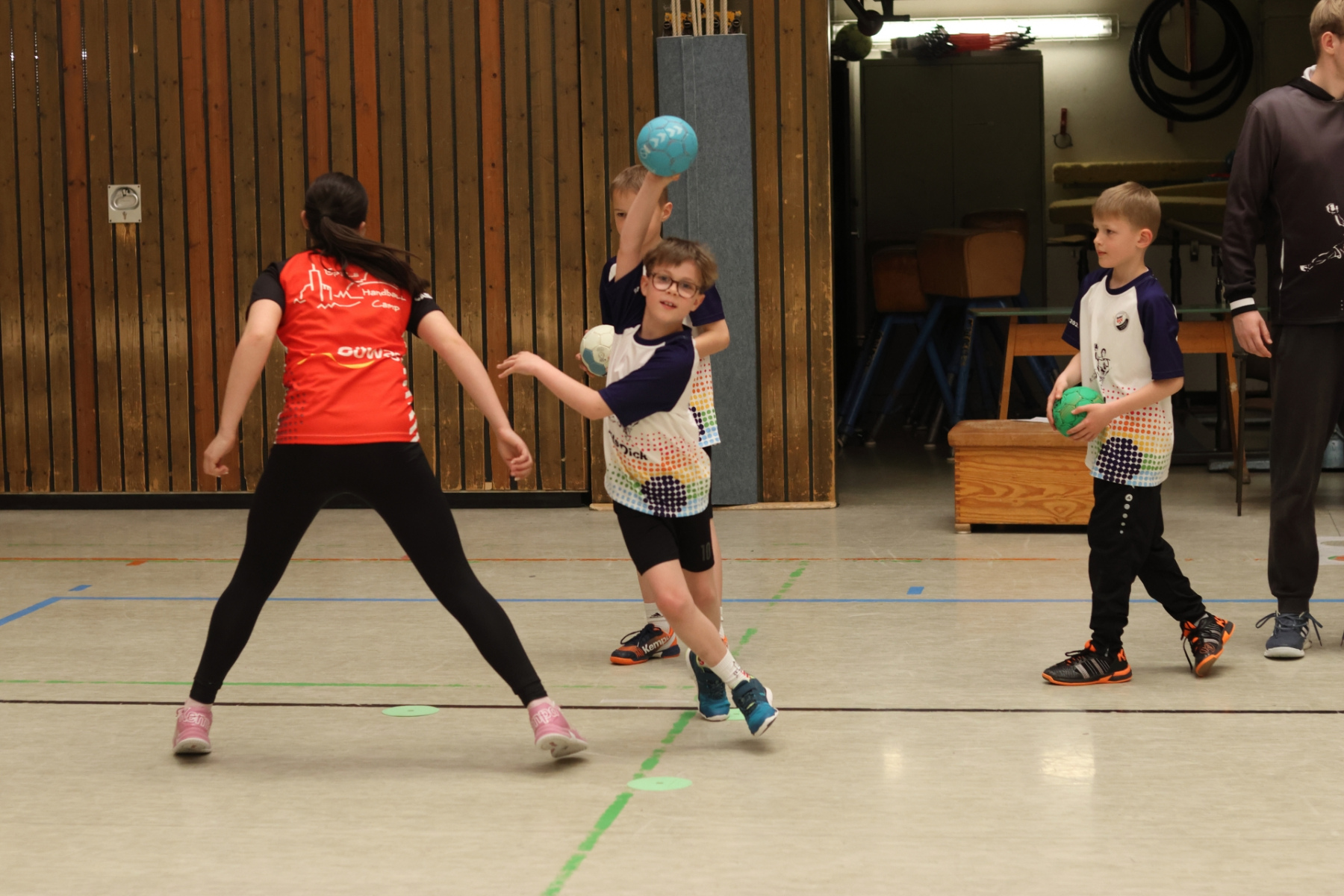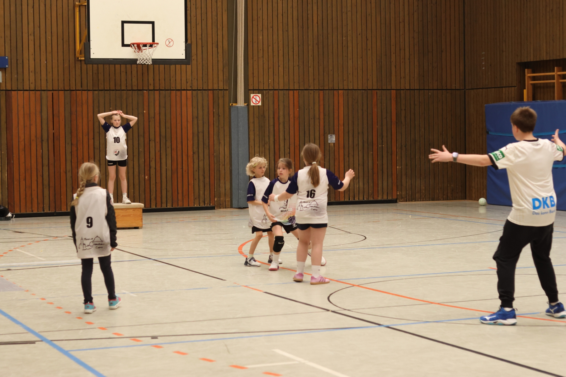 Für etwas Abwechslung und kleine Verschnaufpausen sorgte Friedrich (mB-Jugend) im Gymnastikraum. Mit Spielen zum Austoben und kurzen Yoga-Einheiten zum Runterkommen war für die perfekte Balance gesorgt – Körper und Geist sagen Danke. Die Jüngsten waren derweil bei Max (mB-Jugend) in der Burg-Schul-Sporthalle unterwegs und trainierten fleißig ihre Hand-Auge-Koordination. Gar nicht so einfach, wenn plötzlich alle Arme und Beine gleichzeitig mitmachen sollen!