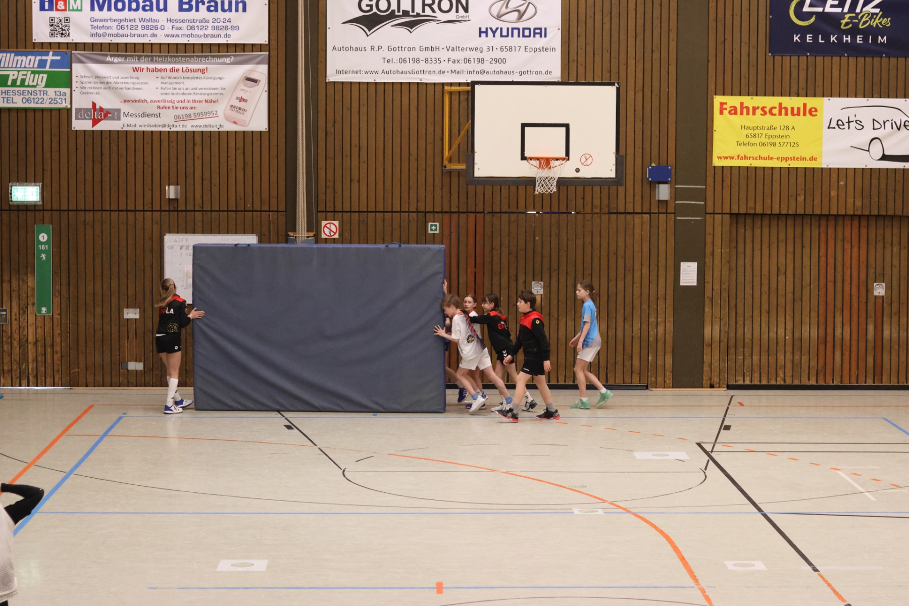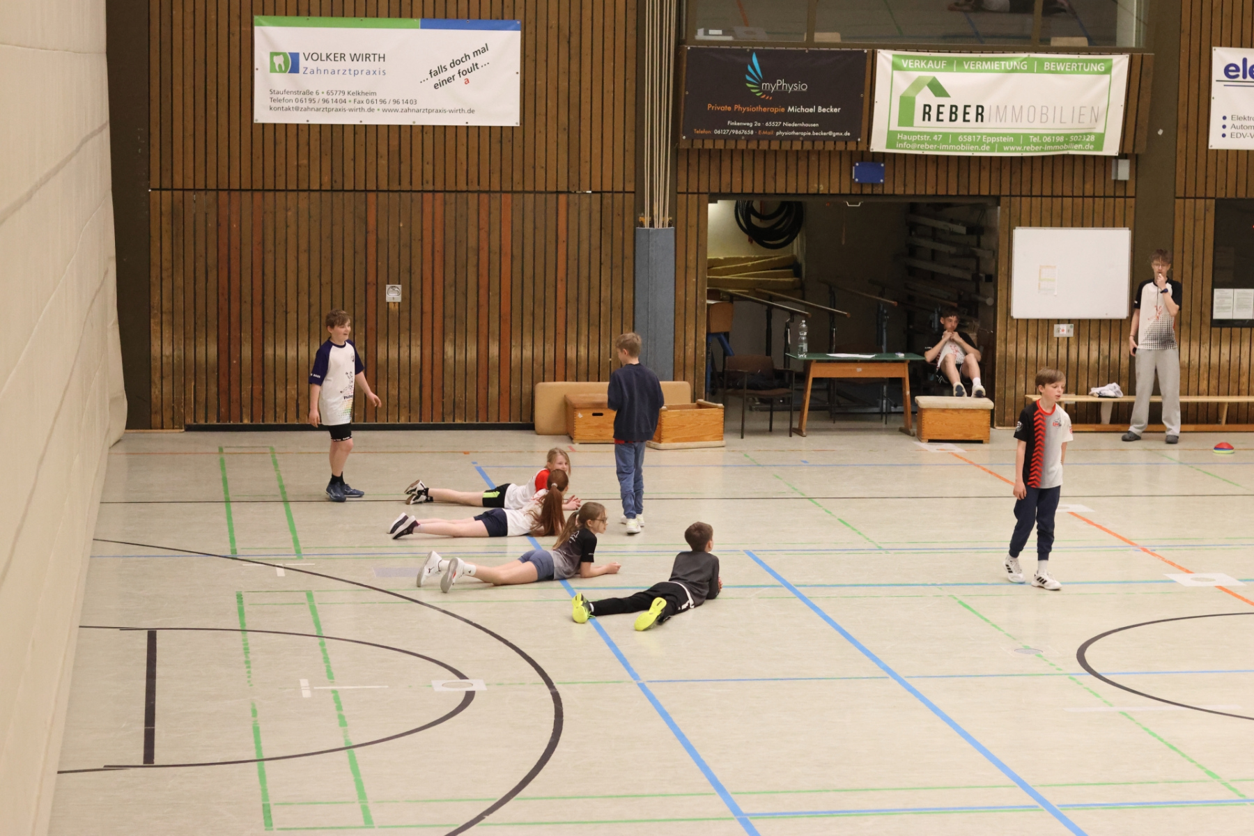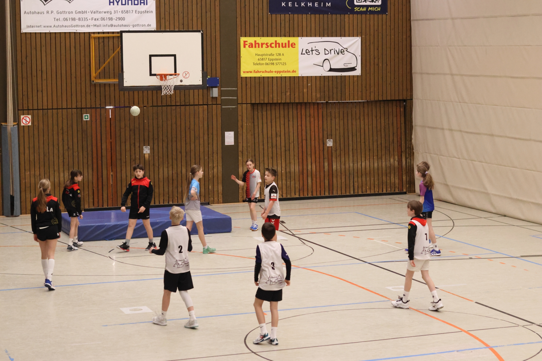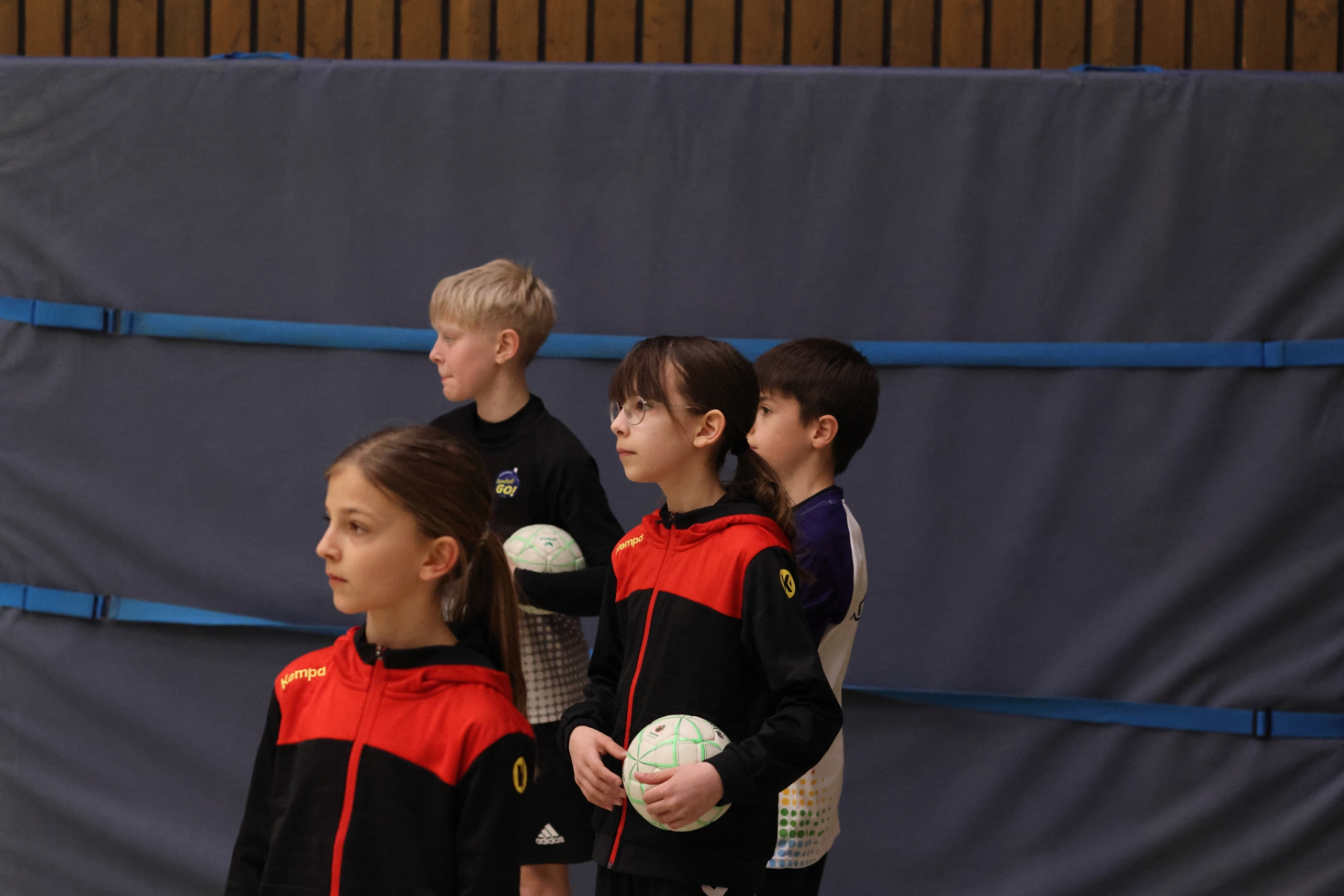 Am Nachmittag ging es etwas kompakter weiter, aber keineswegs weniger intensiv. Jede Gruppe absolvierte noch zwei Trainingseinheiten. Die älteren Gruppen feilten bei Dennis erneut an ihren Würfen aus verschiedenen Positionen. Florian brachte die Beine der Kinder ordentlich zum Glühen, während Romina Amoroso (Damen) mit abwechslungsreichen Übungen die Ballkoordination schulte. Die beiden jüngeren Gruppen nutzten die Zeit für gemeinsames Spielen in der Sporthalle der Burg-Schule – ein perfekter Mix aus Spaß und Bewegung.
