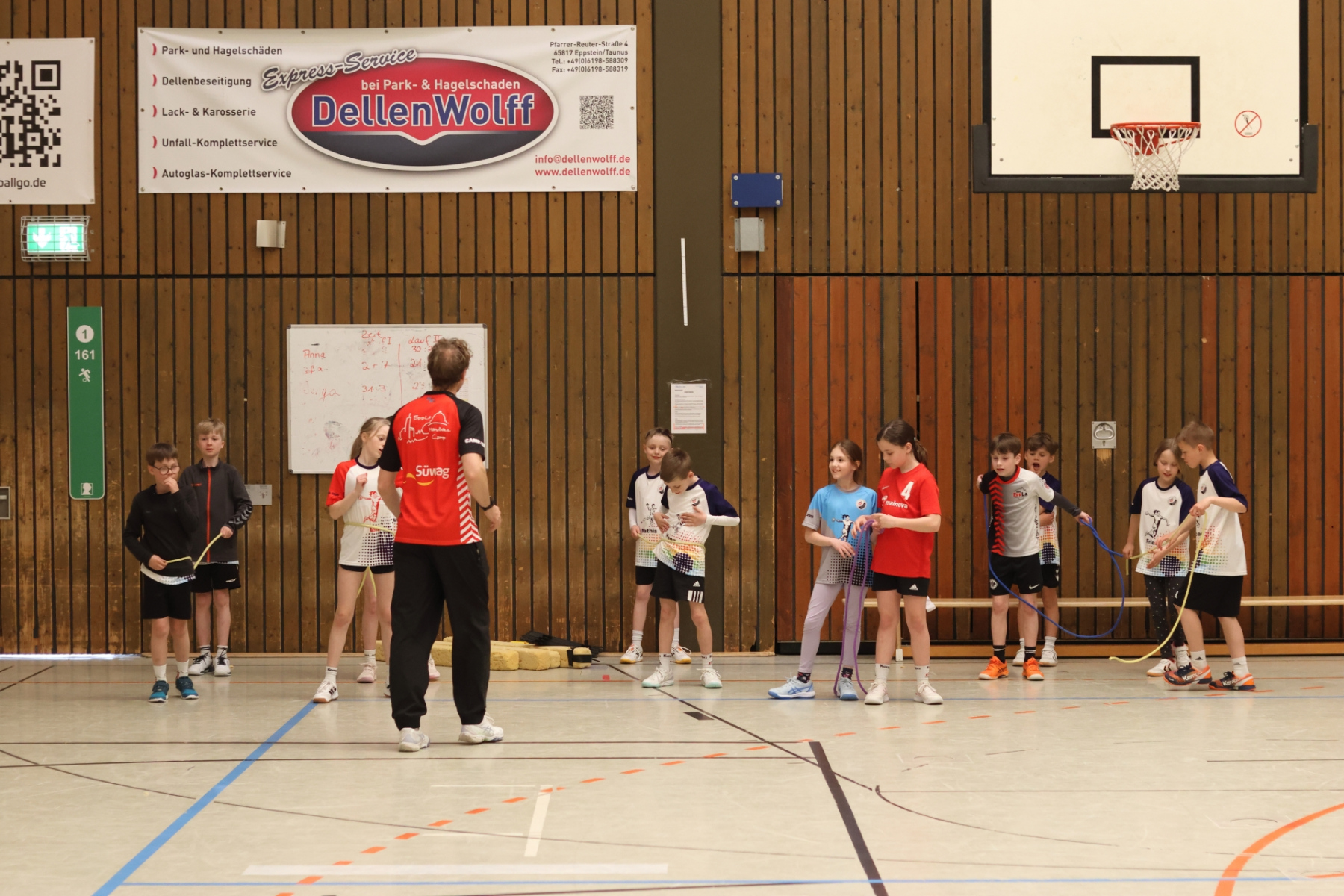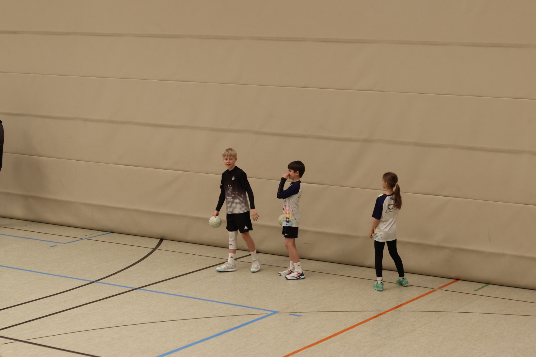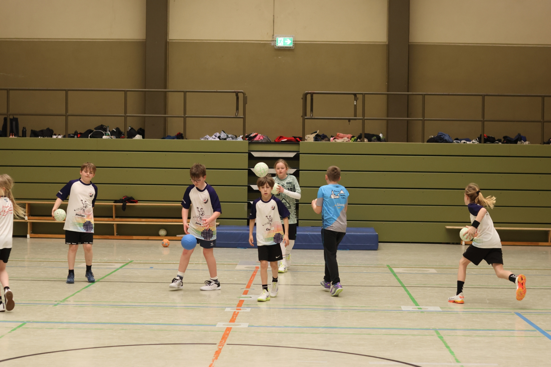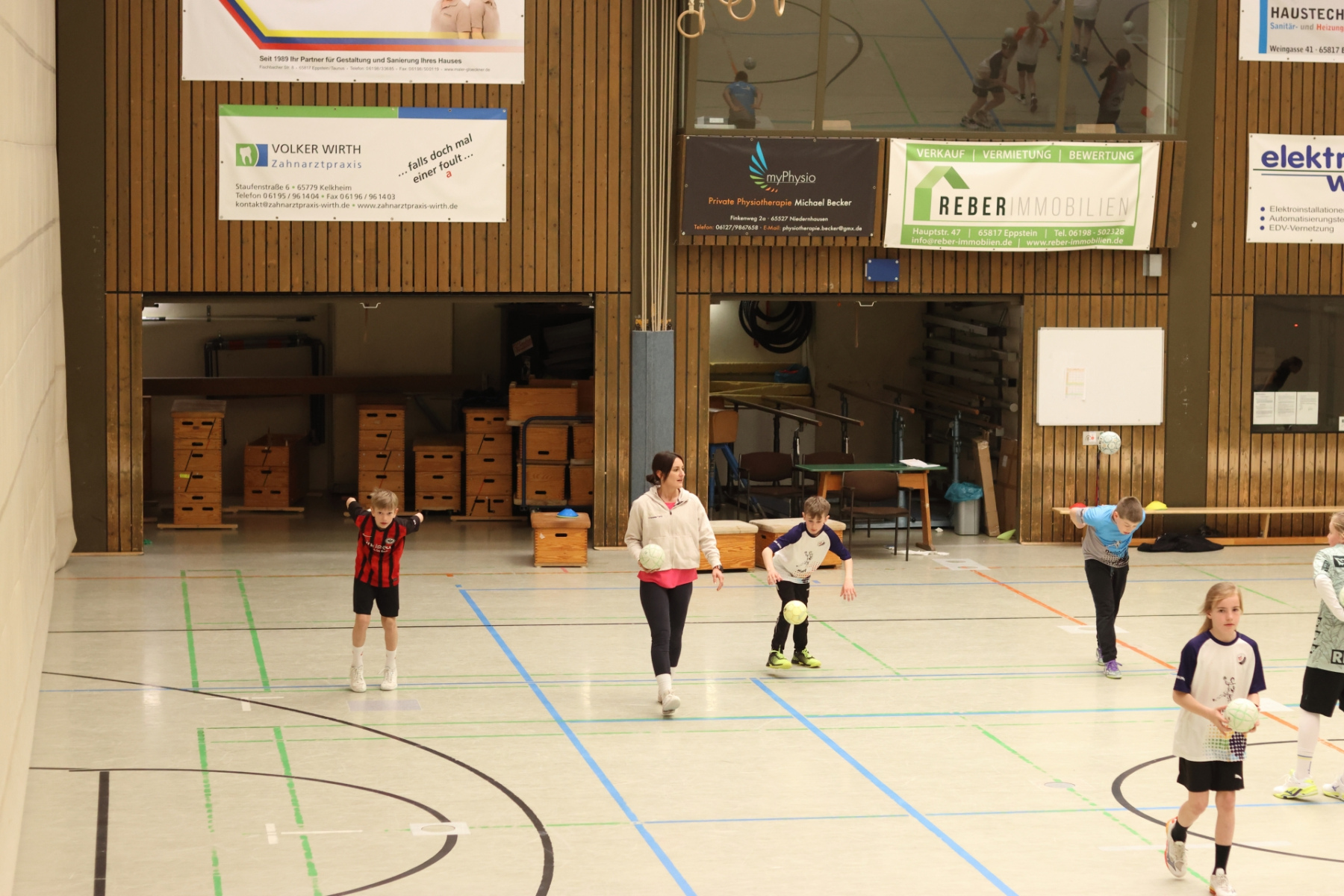 Am Nachmittag ging es etwas kompakter weiter, aber keineswegs weniger intensiv. Jede Gruppe absolvierte noch zwei Trainingseinheiten. Die älteren Gruppen feilten bei Dennis erneut an ihren Würfen aus verschiedenen Positionen. Florian brachte die Beine der Kinder ordentlich zum Glühen, während Romina Amoroso (Damen) mit abwechslungsreichen Übungen die Ballkoordination schulte. Die beiden jüngeren Gruppen nutzten die Zeit für gemeinsames Spielen in der Sporthalle der Burg-Schule – ein perfekter Mix aus Spaß und Bewegung.