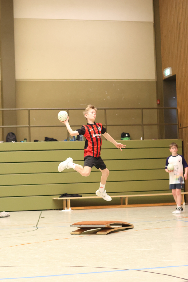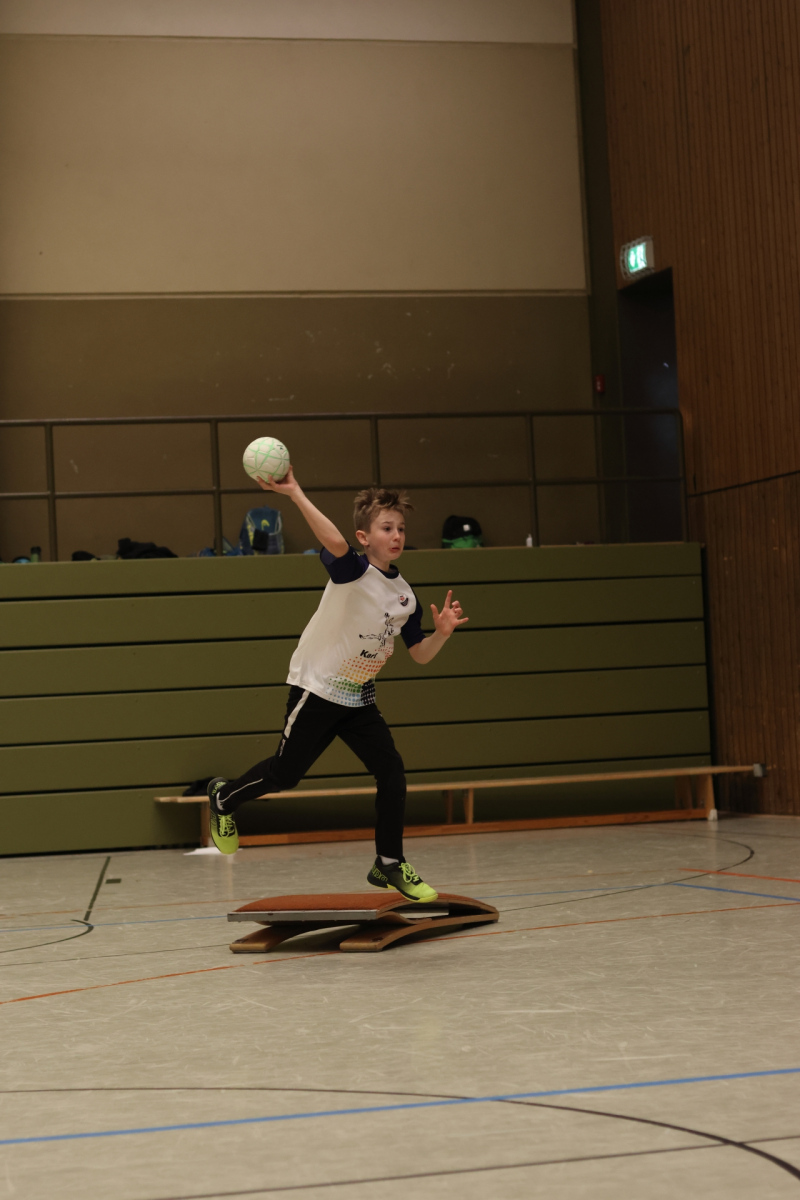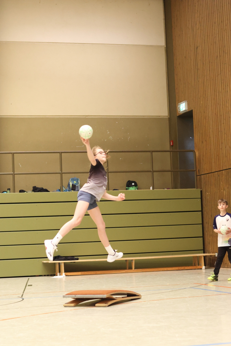 Am Nachmittag ging es etwas kompakter weiter, aber keineswegs weniger intensiv. Jede Gruppe absolvierte noch zwei Trainingseinheiten. Die älteren Gruppen feilten bei Dennis erneut an ihren Würfen aus verschiedenen Positionen. Florian brachte die Beine der Kinder ordentlich zum Glühen, während Romina Amoroso (Damen) mit abwechslungsreichen Übungen die Ballkoordination schulte. Die beiden jüngeren Gruppen nutzten die Zeit für gemeinsames Spielen in der Sporthalle der Burg-Schule – ein perfekter Mix aus Spaß und Bewegung.